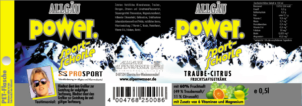 "Power Isosport" Label-Design Allgäuer Alpenwasser